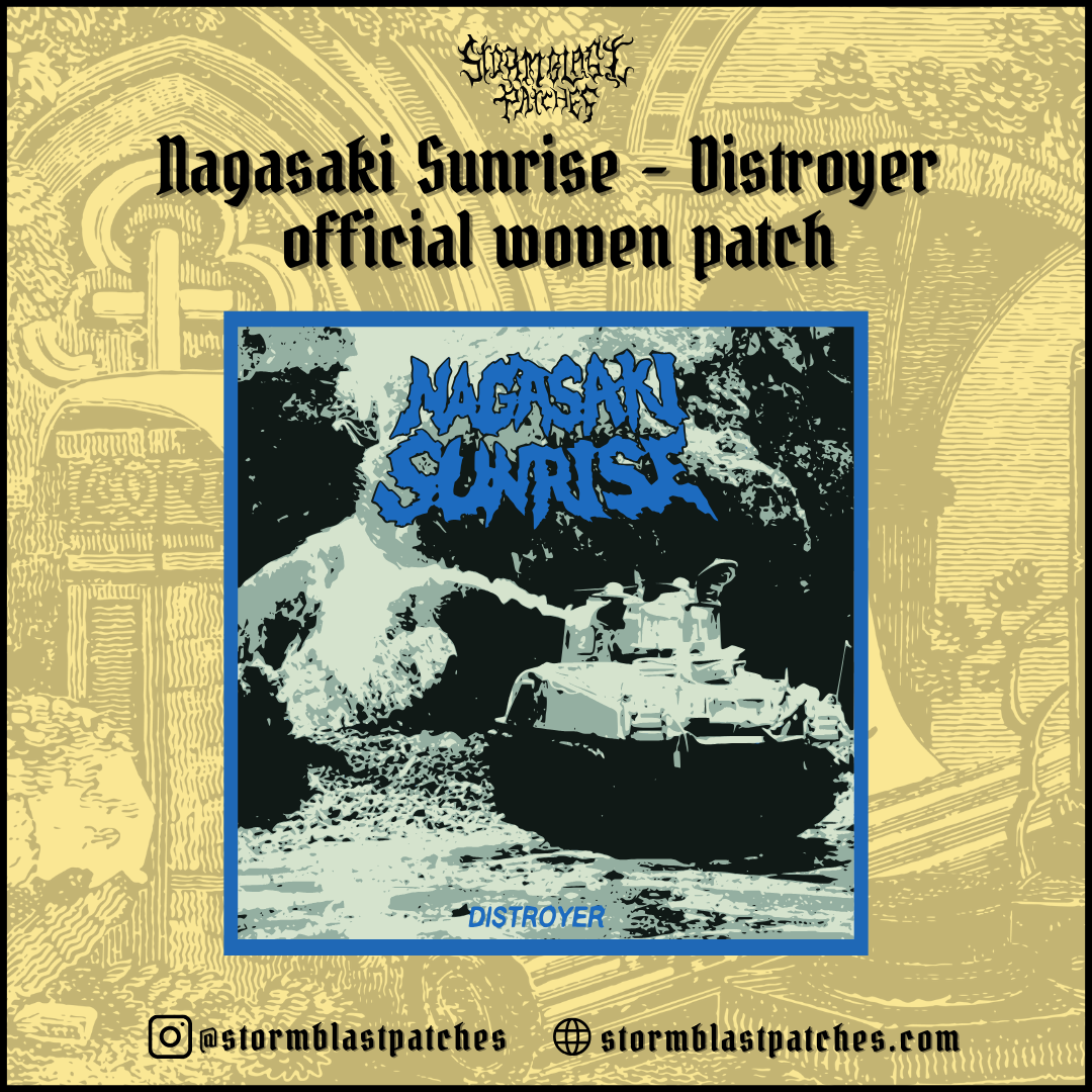 Nagasaki Sunrise - Distroyer 5,00 € Desconto de %. Ao preço do produto acresce IVA de 23%. Partilhar Border Black Blue Comprar Contactar Celebrate Stormblast Patches's first official release with the latest assault on the crust punk scene lead by Nagasaki Sunrise! 10cm x 10cm woven square patch, available in black and blue borders.
